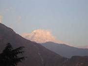 Angekommen um 7 Uhr in der kleine Tempelstadt McLoyd/Dharamshala hiess es erstmal, tibetanisch fruehstuecken: tibetanisches Brot mit Butter und Honig, Kaffee, Omlett... lecker. Charoll kannte sich aus, und die Shopping-Tour war sehr angenehm und eine gute Erholung. Wir sahen jede Menge in safrangelb und granatrot gekleidete Buddhisten, viel 'Holy Shit', sowohl von den Kuehen, als auch bei Kraemern, unzaehlige Affen und ein gewaltiges Granitgebirge mit seinen gruenen Waeldern, gekroent von ewig währenden, majestätischen Schneegipfeln.
